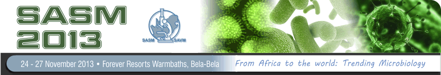 It is my great pleasure as the organiser of the 18th Biennial Conference of the South African Society of Microbiology (SASM) to announce that this conference will be held at Forever Resorts Warmbaths, Bela-Bela between 24 and 27 November 2013. After the 14th SASM conference in 2006 was organised by the University of Pretoria, The School of Molecular and Cell Biology at Wits University is hosting the conference this year. SASM 2013 will attract industrialists from major international Biotechnology companies and leading academics from all over the world to Bela-Bela.